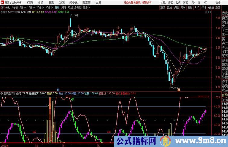 STICKLINE(REF(趋势,1)< 趋势, 趋势,REF(趋势,1),2,0),COLORMAGENTA;