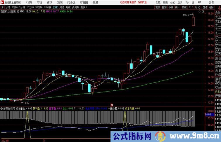 中线位置:(C-LLV(最低成本,120))/LLV(最低成本,120)*100;
