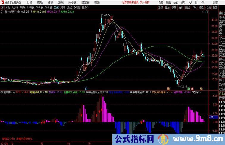 DRAWTEXT_FIX(C>O,0.01,0.9,0,'微信公众号:水鸭的投资日记'),COLORRED;