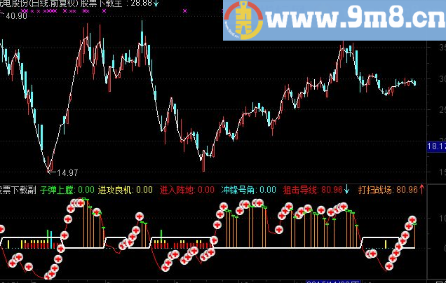 打扫战场: IF(狙击导线 REF(狙击导线,1) AND 狙击导线 65,狙击导线,0),STICK,COLOR008CFF;