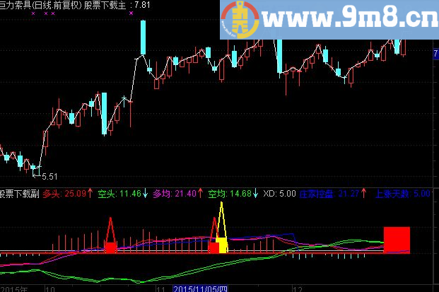 财神线: IF(VAR1 N1/100 ,VAR3,0),COLORRED ,;