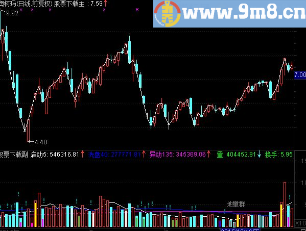 DRAWTEXT(FILTER(百日地量群,4),V+3*H_L, 地量群 ),COLORGRAY;