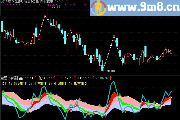 DRAWTEXT_FIX(1,0.0,0.0,0,'【T=1,短线用T=2,牛市用T=3,中线用T=4,熊市用】'),COLORYELLOW;