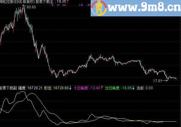 AA10:=MA(C,10); 十日角度:ATAN((AA10-REF(AA10,1)))*180/3.1416,LINETHICK0; AA20:=MA(C,20); 廿日角度:ATAN((AA20-REF(AA20,1)))*180/3.1416,LINETHICK0;