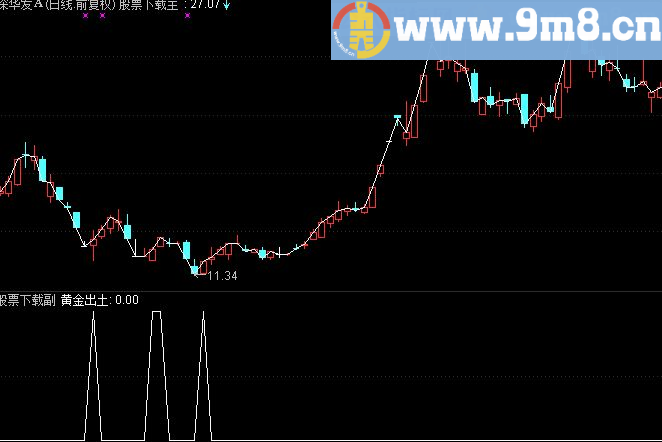 KS13:=(CLOSE-MA(CLOSE,13))/MA(CLOSE,13)*(-100); RSV:=(CLOSE-LLV(LOW,13))/(HHV(HIGH,13)-LLV(LOW,13))*100; FASTK:=SMA(RSV,3,1);K:=SMA(FASTK,3,1);D:=SMA(K,5,1); VAR1:=CLOSE/MA(CLOSE,40)*100 VAR2:=CLOSE/MA(CLOSE,60)*100 VAR3:=HIGH LOW*1.051; VAR4:=VAR3 AND COUNT(VAR3,5) 黄金出土:VAR4 AND (VAR1 OR VAR2) AND REF(KS13,1) =10 AND REF(KS13,1)/KS13 =1.13 AND CLOSE/REF(CLOSE,1) =1.02;