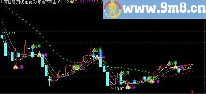 DRAWTEXT(FILTER(VAR1A=1,5),HIGH,' 逃顶'),COLOR00FF00;