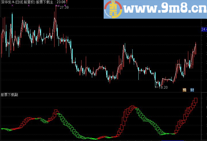 STICKLINE(VAR17-VAR18 0,VAR17,VAR18,8,1), ,COLORGREEN ;