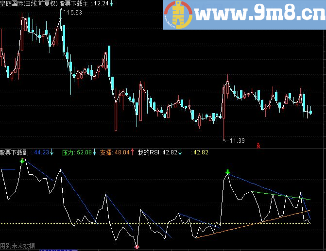 压力:DRAWLINE(DD,RSI,S11,RSI,1),LINETHICK1,COLOR00FF00;