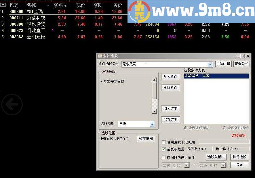 本人有个无敌黑马公式已用多时,选出的股,经过仔细筛选,有的股稳稳当当地吃了一段时间的利润,不敢独享,奉献给大家,祝投机愉快!