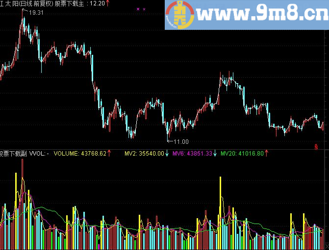 STICKLINE(CURRBARSCOUNT=1 AND PERIOD=5,VVOL,0,-1,-1),COLOR00C0C0;
