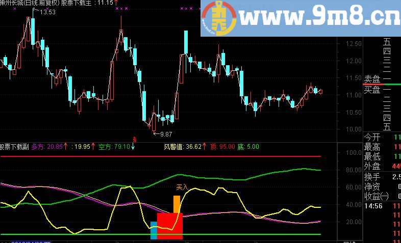 主力进:=IF(V4 =0,V4,0),COLORFF00FF;