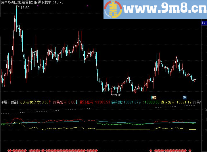 真正盈亏:SUM(IF(REF(累计盈亏,1) REF(获利线,1),累计盈亏-REF(累计盈亏,1),0),0),COLORYELLOW;{统计数据}