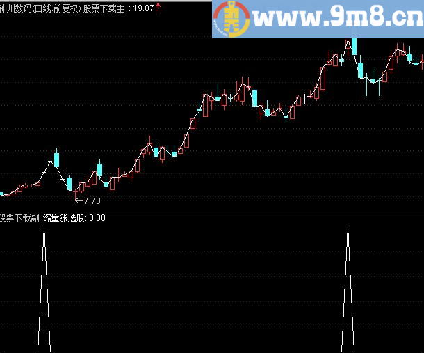 缩量:=IF(CAPITAL=0,AMOUNT=LLV(AMOUNT,34),VOL MA(VOL,XD)/3);