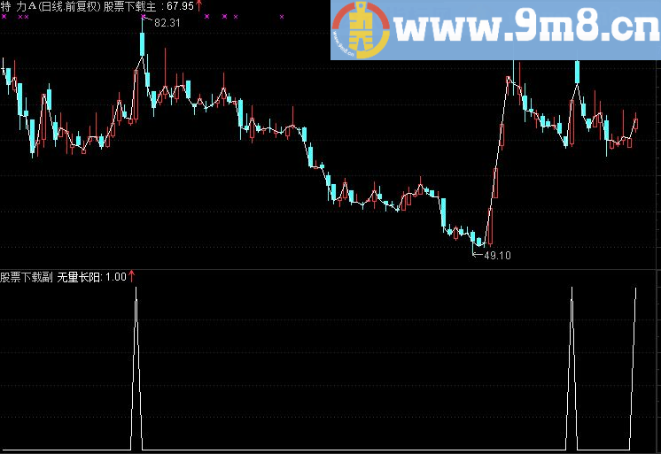 换手率:=VOL/CAPITAL*100; 预换手:=IF(CURRBARSCOUNT=1 AND PERIOD=5,换手率*240/FROMOPEN,DRAWNULL); 博弈K线长阳:=博弈K线长 无量长阳:博弈K线长 18 AND 博弈K线长/换手率 A:=STICKLINE(博弈K线长 0,0,博弈K线长,4,0); B:=STICKLINE(博弈K线长 0,0,博弈K线长,4,0); F:=STICKLINE(无量长阳=1,0,博弈K线长,4,0); 涨幅:=(C-REF(C,1))/REF(C,1)*100;