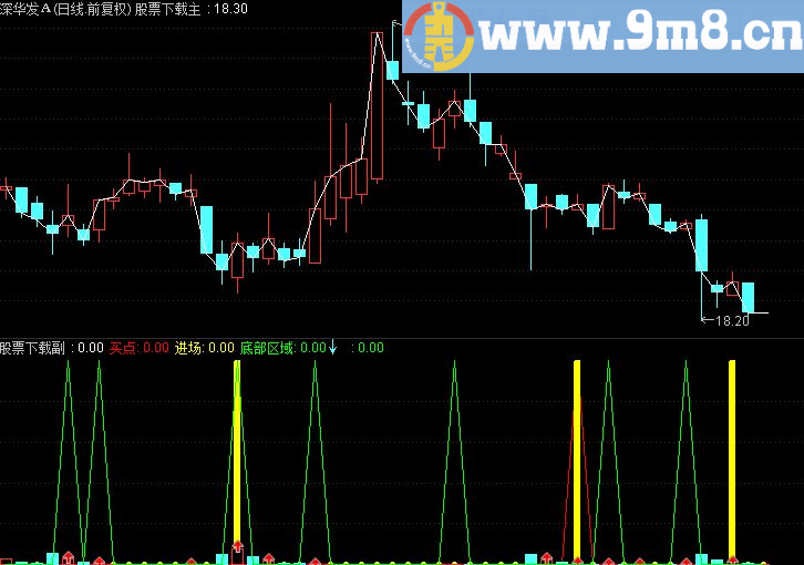 入货点:=IF(REF(底部区域,1) 0 AND REF(C,1) =REF(O,1) AND 底部区域 0 AND C O,1,0);