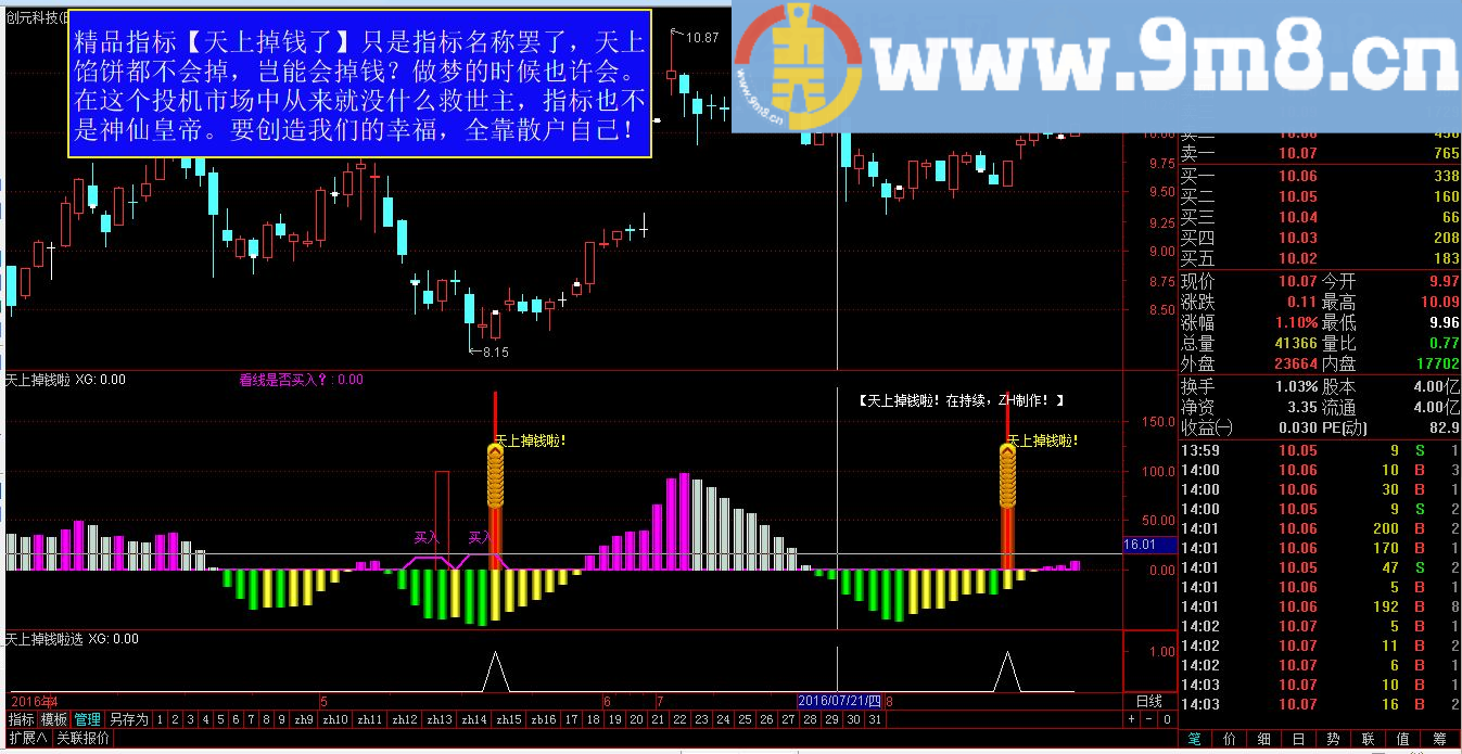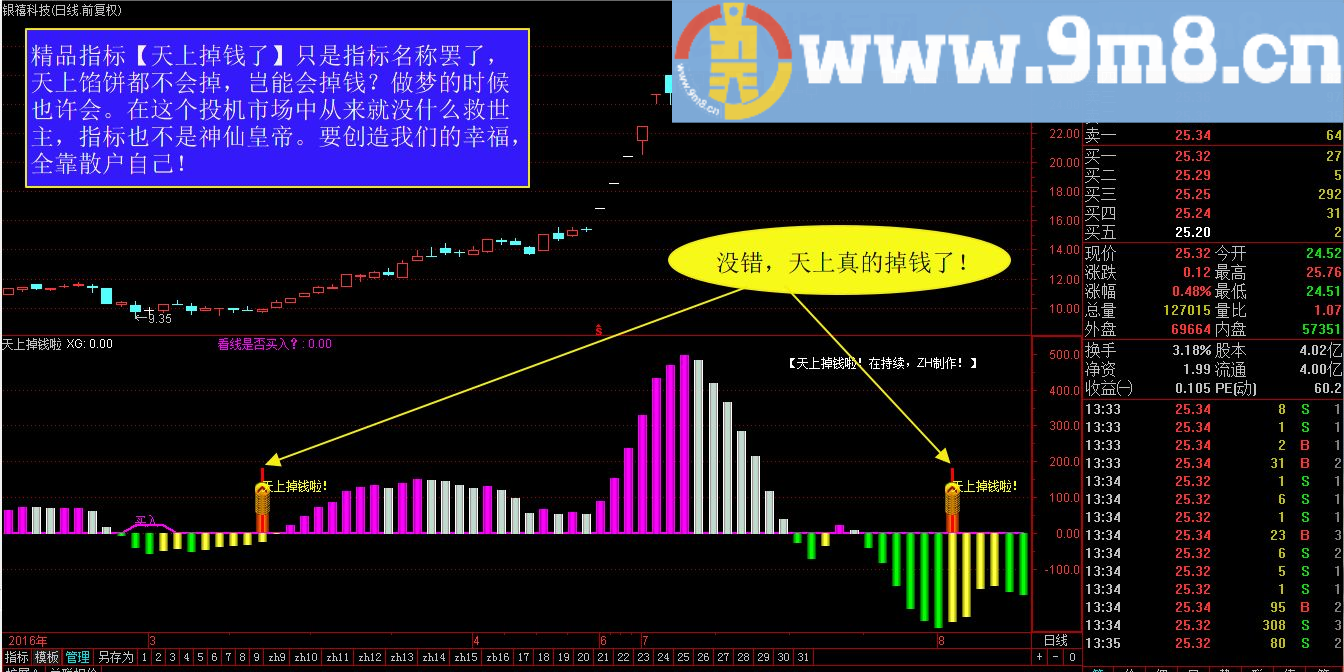 点击下载精品指标系列,【天上掉钱啦】指标!(指标 副图 贴图 无未来)