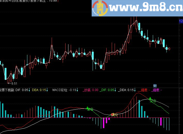 DRAWTEXT(CROSS(DEA,DIF),DIF+0,'空仓'),COLORGREEN;