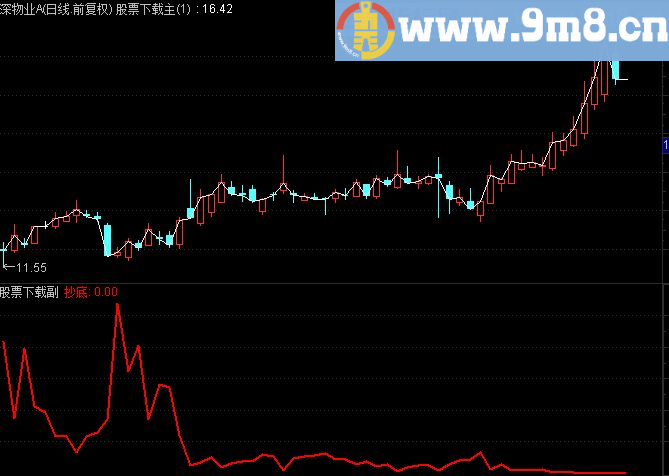 现在根据这些建议和意见对单线抄底指标做了相应的升级改动,升级依据是通过引入三种底部和庄家抄底的相关条件来对指标的抄底信号进行进一步限定。因此,升级后的该指标公式不仅完全消除了前一个版本的一些缺点,而且还具有以下优点:1) 在没有出现抄底信号时的抄底值全部为零,这样使用者就能够直接看出抄底的时间点;2) 操作者在出现低部信号杀入后股价一般不会下跌,走势即使没有大幅上涨,也至少有明显上涨。因此,升级后的此单线抄底指标降低了抄底的风险,相对于未升级的版本来说更为可靠和准确,升级后基本上达到了98%的准确率;3) 升级后的源码由未升级前的1行增到到14行,绝大部分都是我自己编写的代码了,所以将其定义为原创。