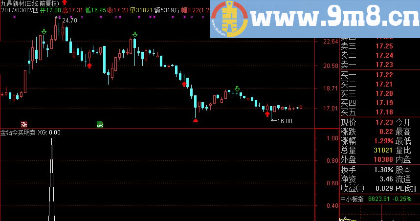 使用方法:出信号盘感好当天逢低介入,反之观望即可,建议阴线关注。 金钻系列指标一如既往的精益求精,我们努力做到更好。 指标不是万能的。也没有100%准确的。我们旨在强中取,不在曲中求。 遵守亏小挣大原则。祝大家投资愉快。