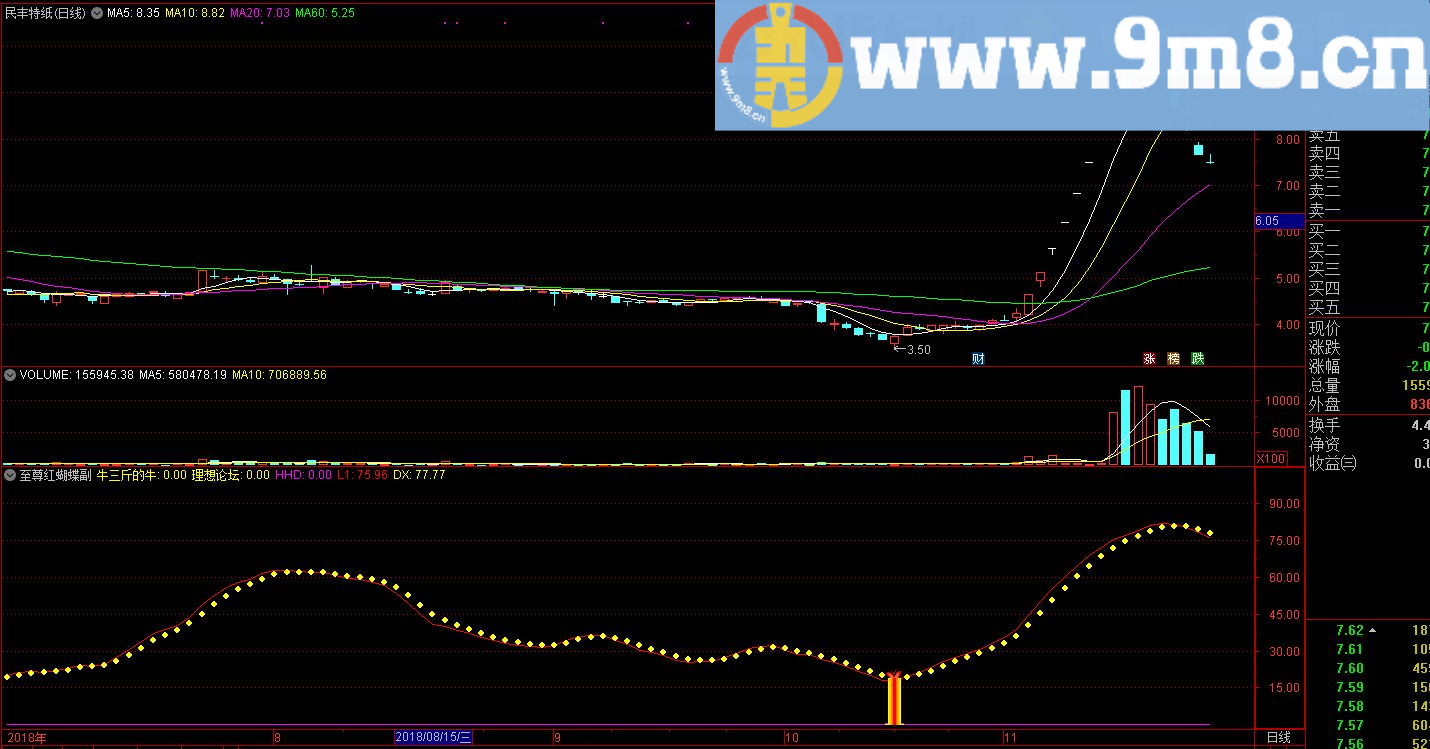 点击下载至尊红蝴蝶精准波段底 通达信副图指标 贴图 无未来