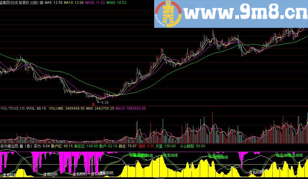 散户区: MA(WINNER(CLOSE*0.95)*100,3)*VARC, , COLORYELLOW;