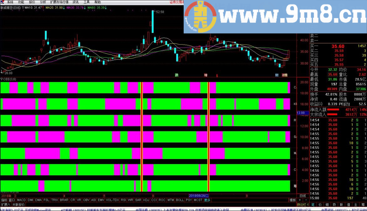 STICKLINE(MACD.DIF MACD.DEA AND MACD.DIF 0,6,8,4,0),COLORMAGENTA,LINETHICK2;