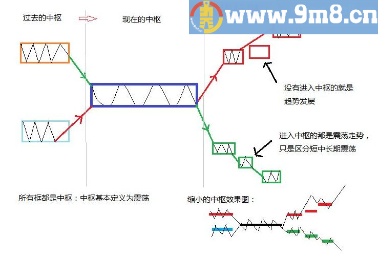 运用: 中枢定义其实很容易理解,就是趋势中的休息区(震荡与调整),也可以说是乖离后的回归。