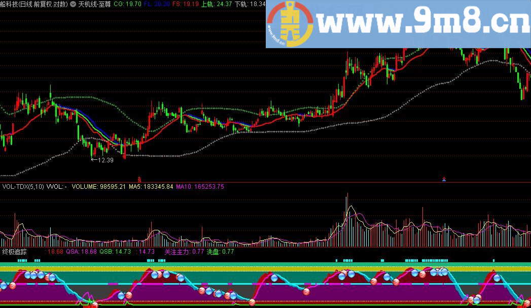 关注主力:IF(VR9 -150,VR9,0),COLORFF00FF,LINETHICK2;