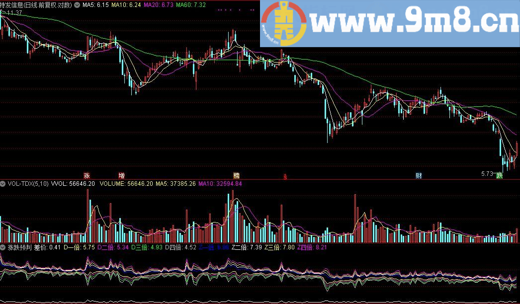 涨跌预判 通达信指标 源码 贴图 让资金利用最大化 差价:H-L; D一倍:L-差价; D二倍:L-2*差价; D三倍:L-3*差价; D四倍:L-4*差价; Z一倍:H+差价; Z二倍:H+2*差价; Z三倍:H+3*差价; Z四倍:H+4*差价;