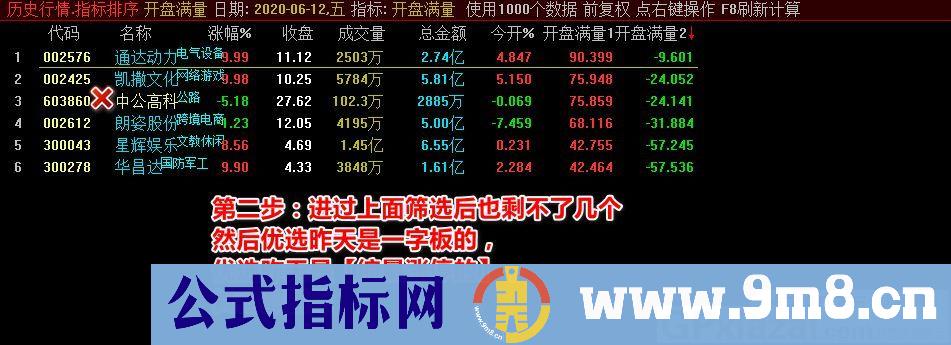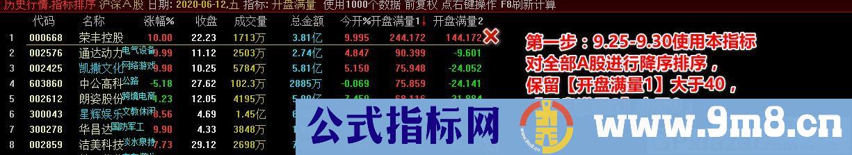 开盘满量 集合竞价抓涨停的指标 有最详细用法 通达信排序指标 源码 贴图
