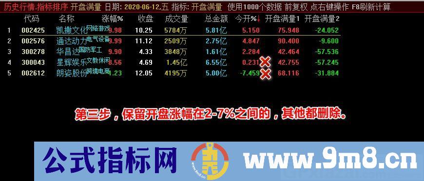 3、保留开盘涨幅在2-7%之间的,其他都删除。