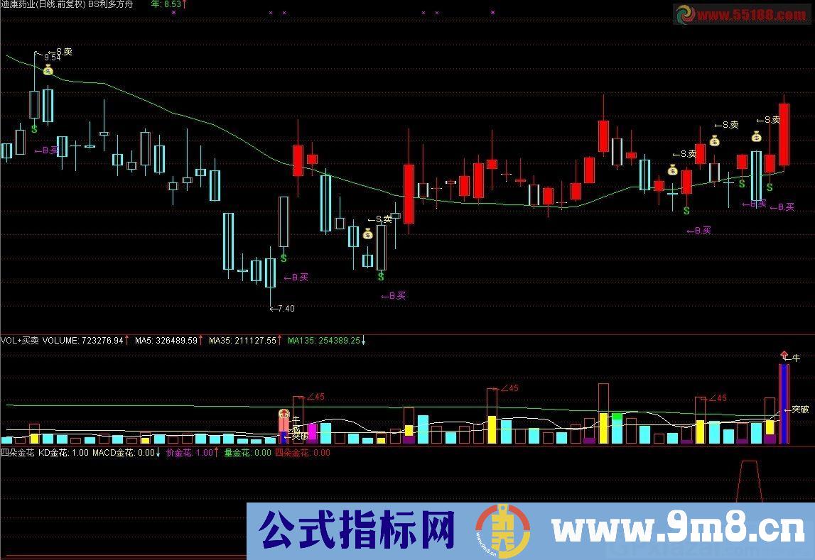 一旦出现四朵金花买点信号,不论是大盘还是个股,都会有一波行情,准确率达到90%--95%。