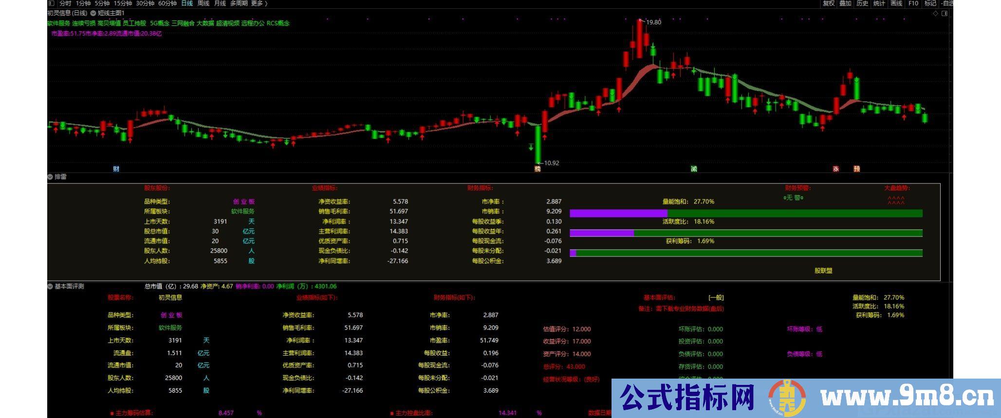 基本面评测 F基本面来排雷 通达信副图指标 源码 贴图 基本面评测 和 基本面来排雷 是很实用的公式, 有这两个公式,可以节省看盘中,查开F10。 点击下载基本面评测 F基本面来排雷 通达信副图指标 源码 贴图