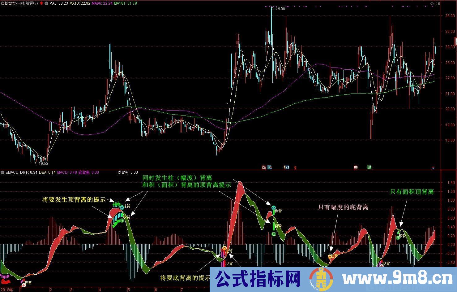 包括柱(幅度)背离预警及提示,积(面积)背离预警及提示。