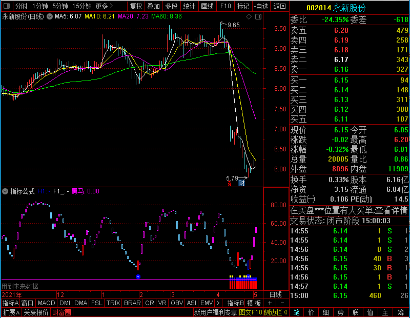 黑马:(macd0>REF(MACD0,1)*2.5 AND MACD0>15),COLORFF00FF;