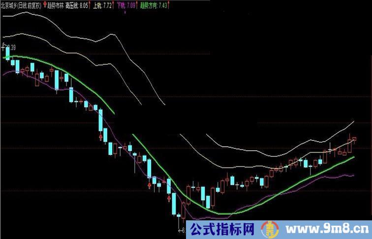 自编趋势布林,拐向明确。比系统自带BOLL好用多了