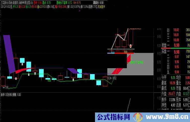 A1:=FILTER(C>REF(C,1)*1.098,9);