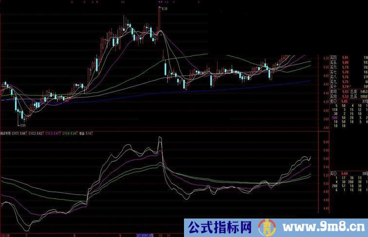 CYC¡Þ:IF(JJJT,DMA(AMOUNT/(100*VOL),100*VOL/FINANCE(7)),EMA((HIGH+LOW+CLOSE)/3,120));