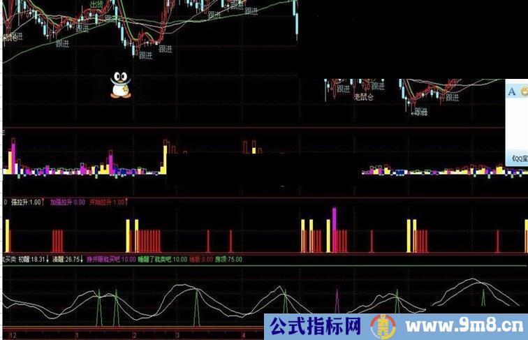 梦乡:=(CLOSE-LLV(LOW,13))/(HHV(HIGH,13)-LLV(LOW,34))*89; 初醒:SMA(梦乡,7,1); 清醒:SMA(初醒,5,1); 挣开眼就买吧:IF(CROSS(初醒,清醒) AND 清醒<20,50,10); 睡醒了就卖吧:IF(CROSS(清醒,初醒) AND 清醒>40,50,10); 地板:8,COLORRED,LINETHICK2; 房顶:75,COLORGREEN,LINETHICK2;