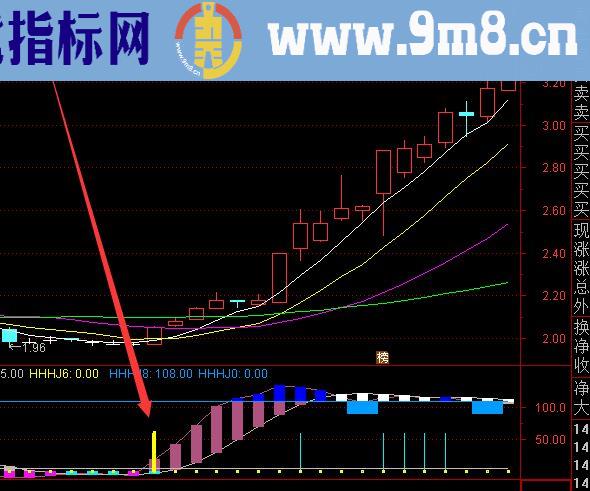 vseee6:IF(CROSS(主力筹码,vseee5),60,0),STICK,COLORYELLOW,LINETHICK4;