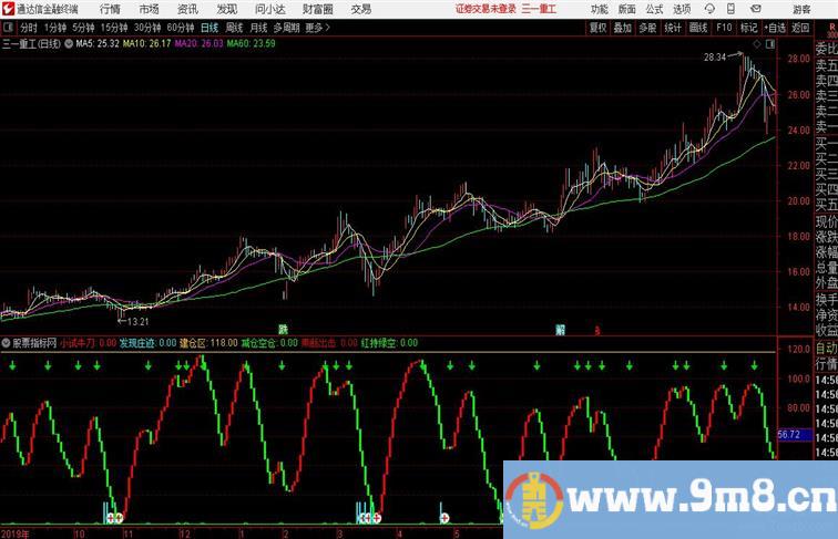果断出击:IF(CROSS(端庄窝,0.01),18,0),STICK,COLOR0000CC,LINETHICK2;