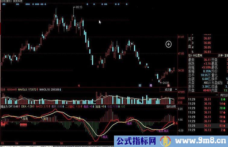 加油:CROSS(DIF,DEA) AND DIF>0,coloryellow,NODRAW;