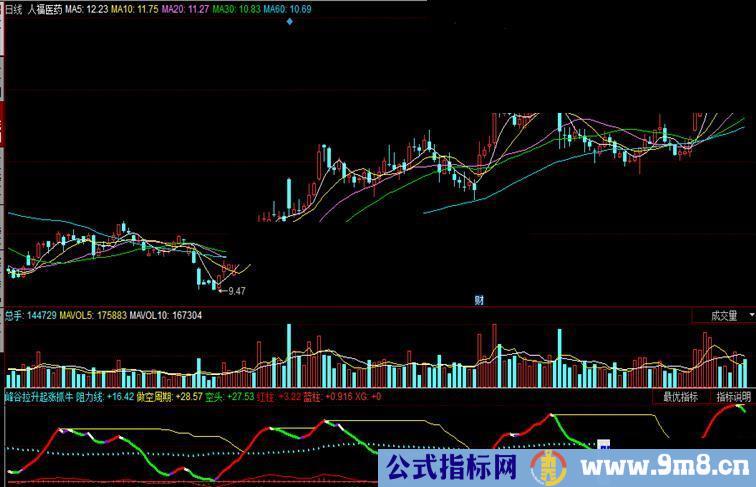 波峰波谷:=SMA(拉升力A,3,1),Color09FFFF;