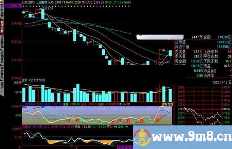 2.买卖提示向上突破"止鸁逃命"黄圈线、为追涨信号.