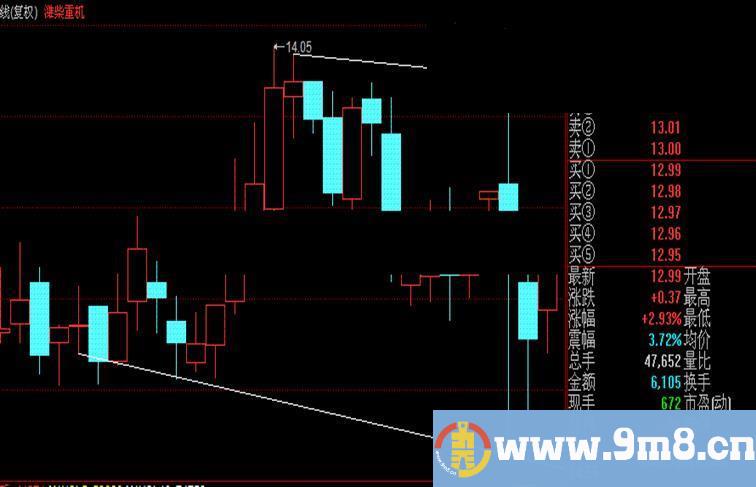 VA1:=TROUGHBARS(2,5,1); VR1:=PEAKBARS(1,5,1); VA2:=IF(VA1=0,1,0); VR2:=IF(VR1=0,1,0); DRAWLINE(REF(VA2,1),L,VA2,L,1); DRAWLINE(REF(VR2,1),H,VR2,H,1);
