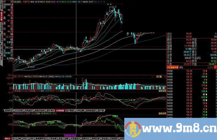 MACD是大家最熟悉的,最经典的指标,但由于信号迟总是慢了一个节拍,从而失去最佳的机会,经过本人的改进实验,有效的解决了这个问题,利用趋势线颜色的变化,结合红绿柱即可把握机会,从而占尽先机,让利润最大化.随便叨一句,股市里没有万能的百分之百的指标,指标供参考,买卖靠大脑。