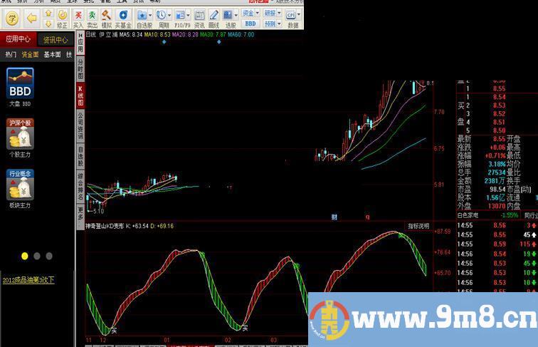 DRAWTEXT(CROSS(K,D) AND MA(CLOSE,5)