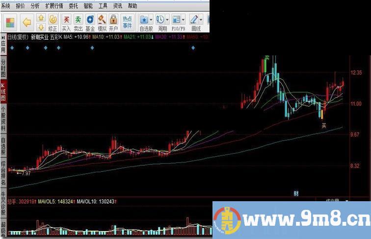 九毛八公式指标 » 同花顺五彩K 主力动向源码 加入收藏