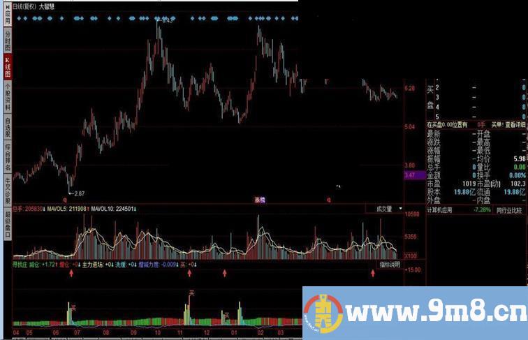 STICKLINE(Var8>REF(Var8,1),0,Var8,4,0),color10FFFF; 主力进场:IF(Var8>REF(Var8,1),Var8,0),color10FFFF,STICK;