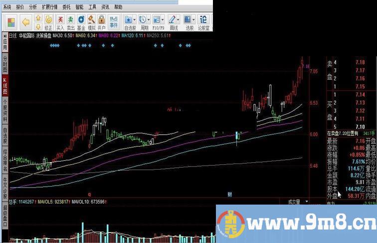 STICKLINE((C-REF(C,1))/REF(C,1)>0.095,C,O,2,0),colormagenta;